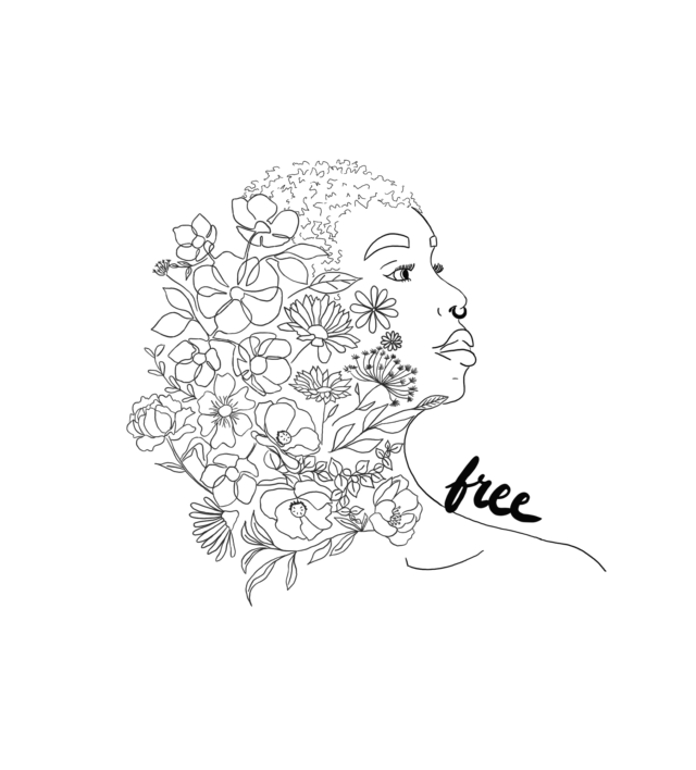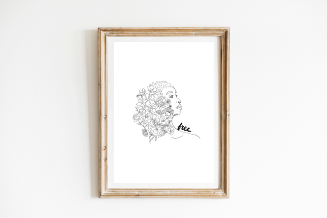 Cette illustration est un portrait minimaliste et floral réalisé avec douceur et amour.
